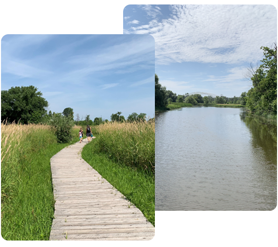 Follow Chapman’s beautiful boardwalk trail along the edge of the Rideau River as you explore a mix of natural river shoreline, wetlands and flood plain areas unique to the City of Ottawa. The 1.5 km out-and-back trail includes benches, interpretive signs and – if you look closely – a colony of fairies that reside in their brightly-coloured homes along the trail.